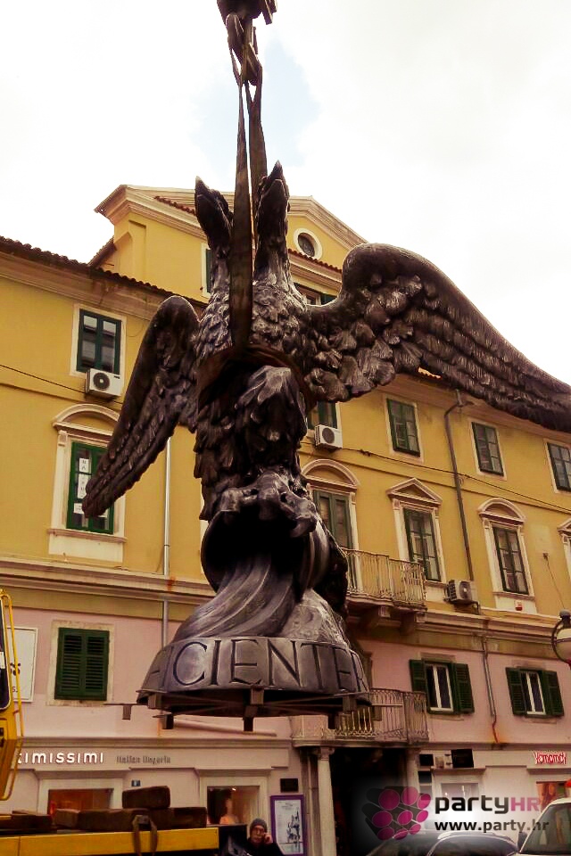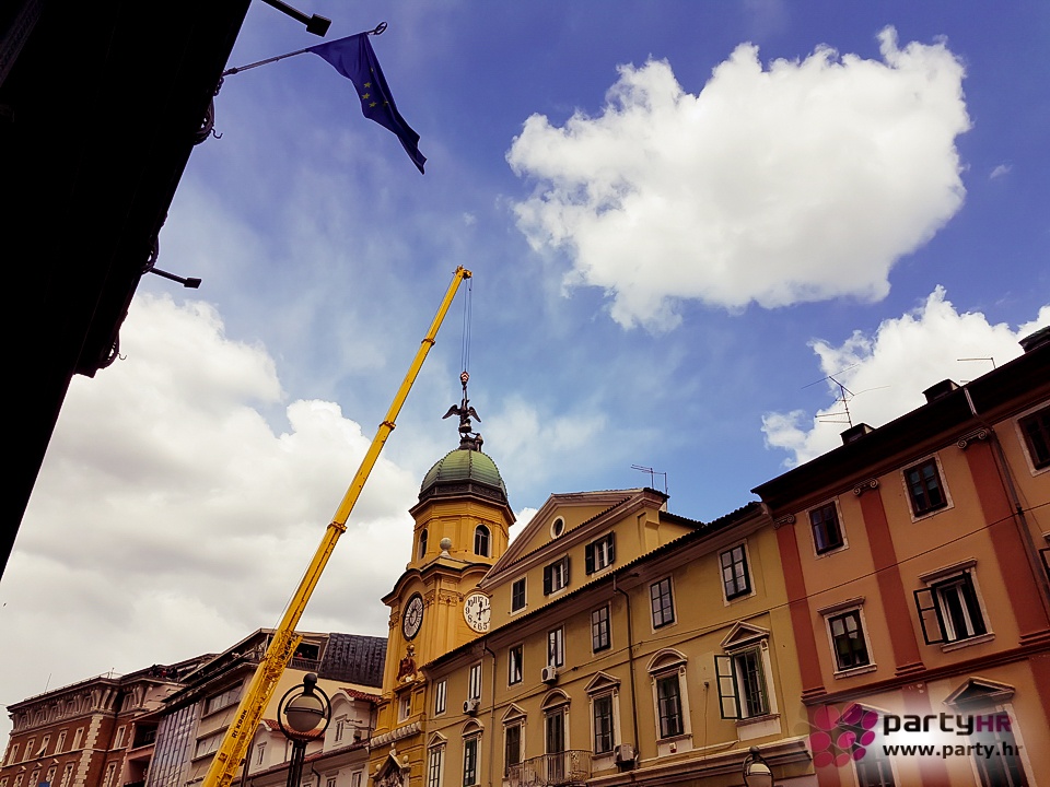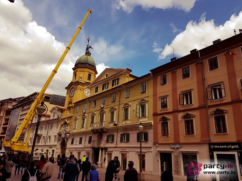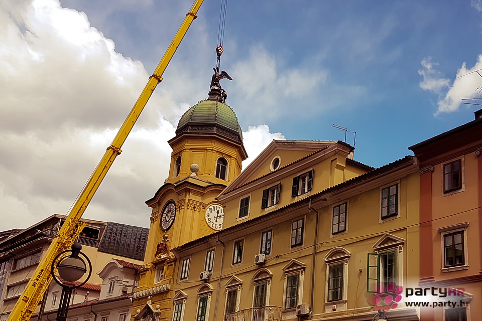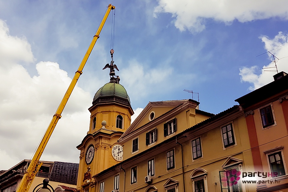 Skulptura dvoglavog orla, jednog od simbola grada Rijeke, postavljena je ponovo u srijedu na kupolu Gradskog tornja na Korzu, nakon dugih 68. godina. Dvoglavi orao bio je dio grba Svetoga Rimskog Carstva, čiji je car i hrvatski kralj Leopold I. Habsburg 1659. godine Rijeci dodijelio grb na kojem je dvoglavi orao, s objema glavama okrenutim u istome smjeru. D'Annnuzijevi arditi smatrali su da je dvoglavi orao austrijski simbol, a jednoglavi rimski, te je skulptura 1949. godine uklonjena s tornja.